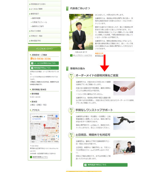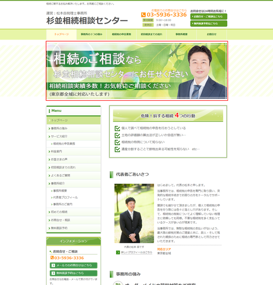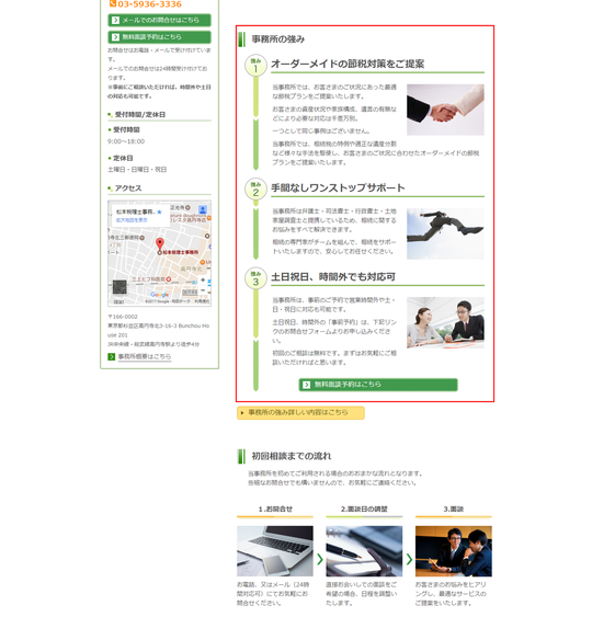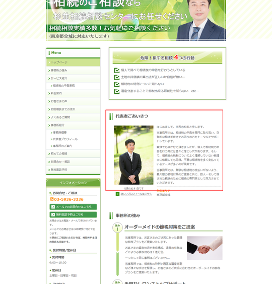 お陰様で、以前作成したホームページからの一般業務の集客が順調なので、より単価の高い相続のお問合せが欲しかった。