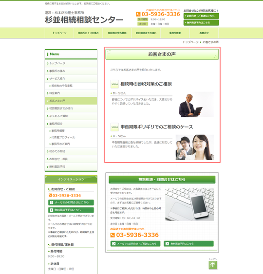 お客さまの声や事例は、掲載しているだけで、先生(事務所)の実力や実績を証明することが簡単にできます。