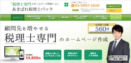 税理士専門のホームページ作成サービス【あきばれ税理士パック】には、これまでに560件もの税理士・会計事務所のホームページ作成の実績があります。その豊富な経験と実績に基づき、