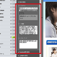 そこで当社のCMSでは、管理画面から簡単に、「タイトルタグ」と「descriptipnのメタタグ」を書き込めるようにしました。これにより、専門知識不要で、Googleが求める「タイトルタグ」と「descriptipnのメタタグ」を設定いただけます。