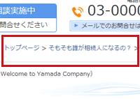 「パンくず」とは、右図のようなリンクのこと。ホームページを見ている人が、「自分が今、どのページにいるのか」を把握するためのものです。